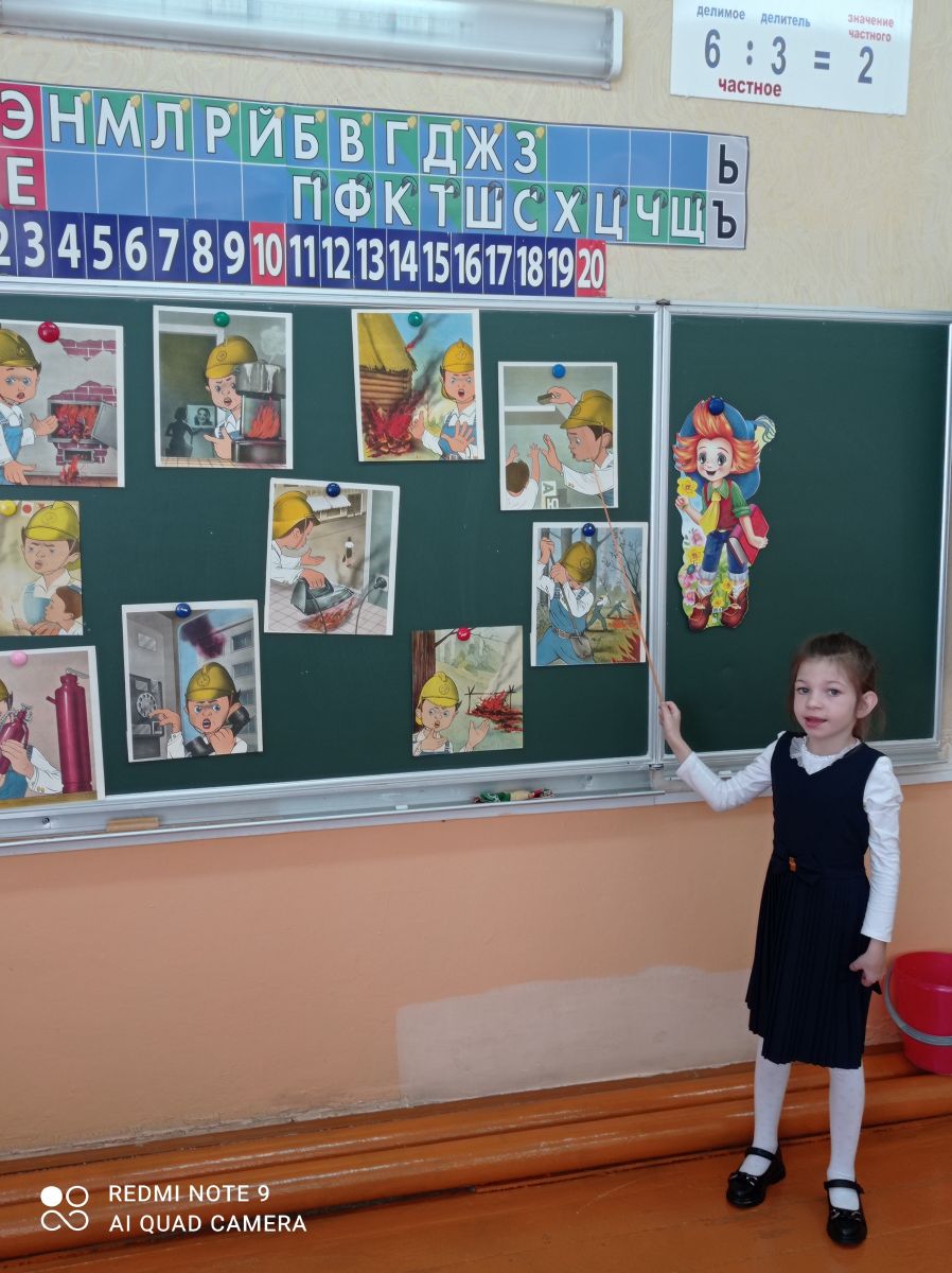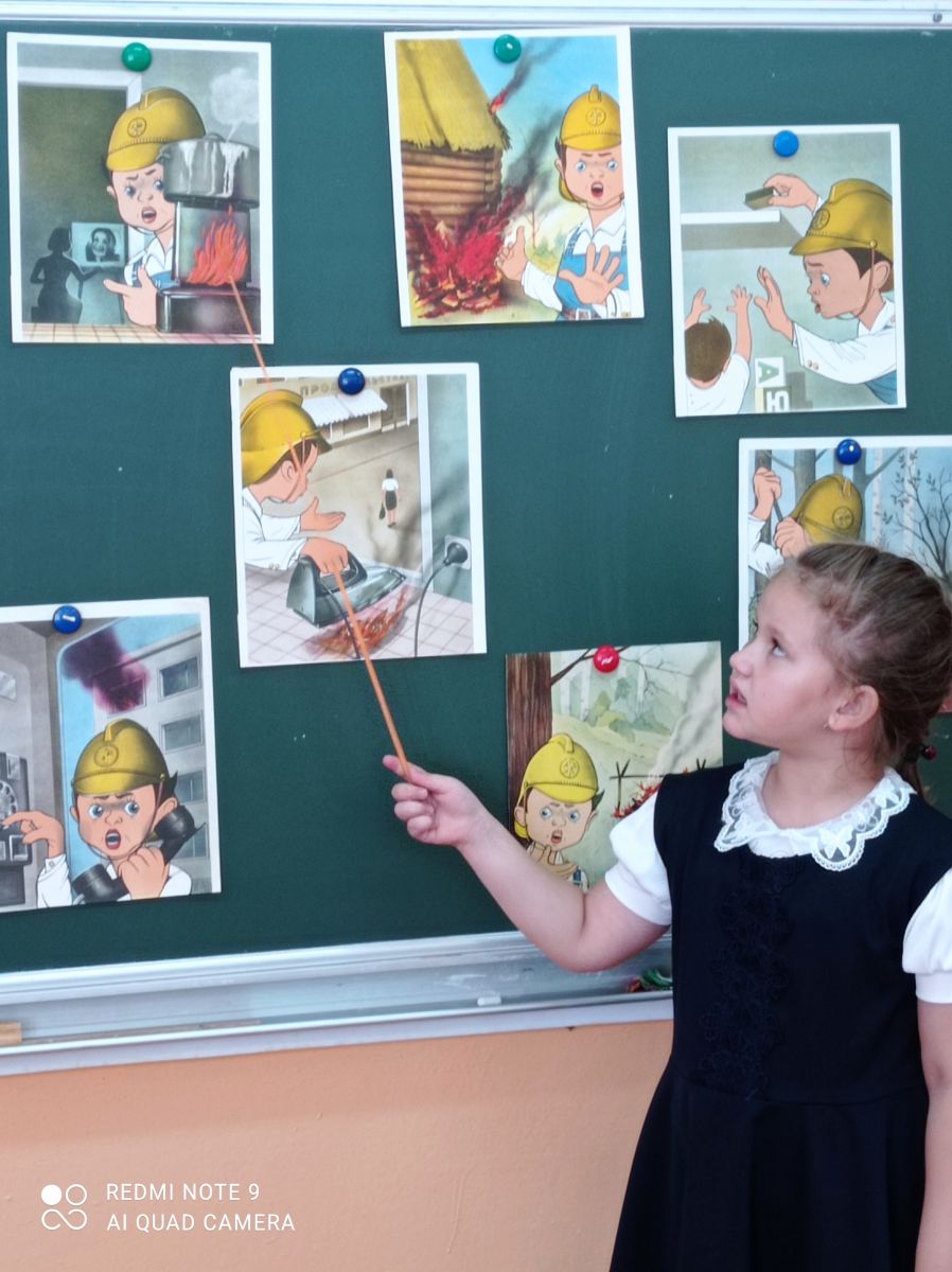 С целью ознакомления с основами пожарной безопасности, с основными причинами пожаров, с первичными средствами пожаротушения, учить соблюдению правил пожарной безопасности, обучения действиям при возникновении пожара 21 сентября в 1 классе прошел классный час на тему «Пожарная безопасность». -