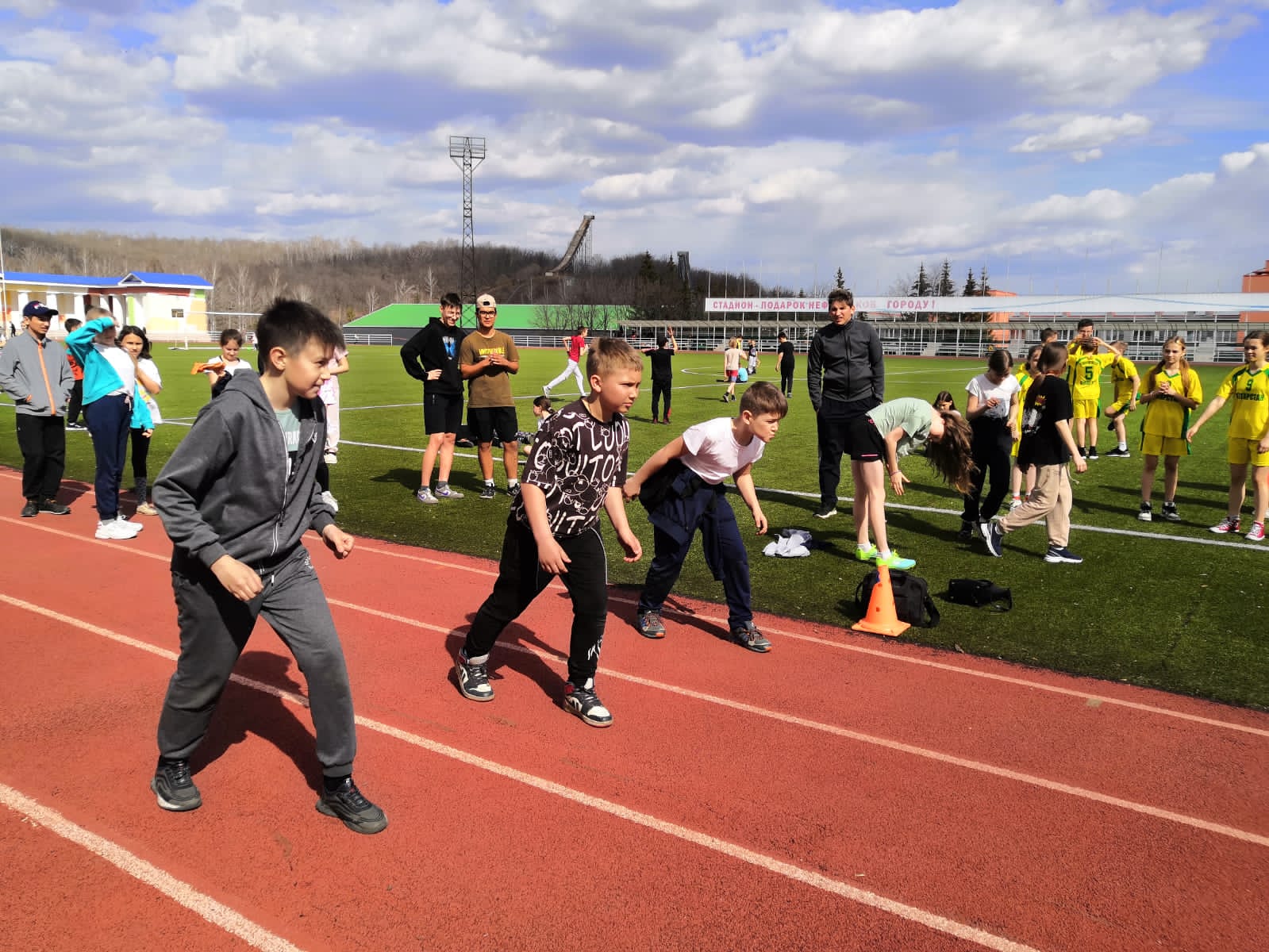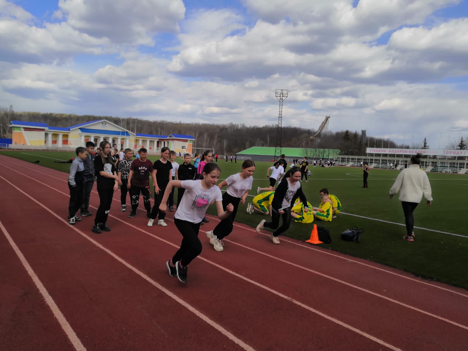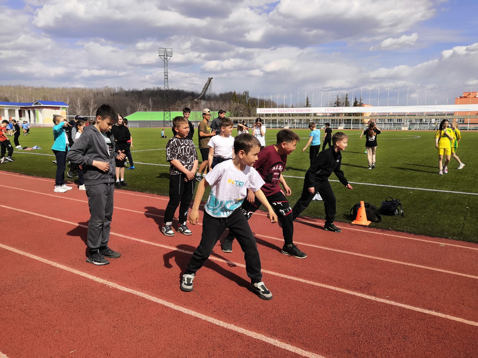 Сегодня учащиеся 5 класса приняли участие в забеге на 30 м, в рамках соревнований "Президентские состязания" -
