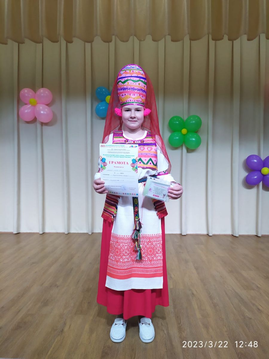 Сегодня 22.03.2023 г. в рамках Года национальных культур и традиций, в целях выявления, развития и поддержки талантливых детей на основе приобщения к фольклорному творчеству, сохранения и укрепления духовных ценностей, возрождение исконных национальных традиций, в школе № 7 прошел муниципальный фестиваль – конкурс «Национальные культуры и традиции народов Поволжья», где ученица 4 класса Суслова М. заняла 1 место в номинации «Музыкальный номер». Желаем ей дальнейших побед и достижений! -