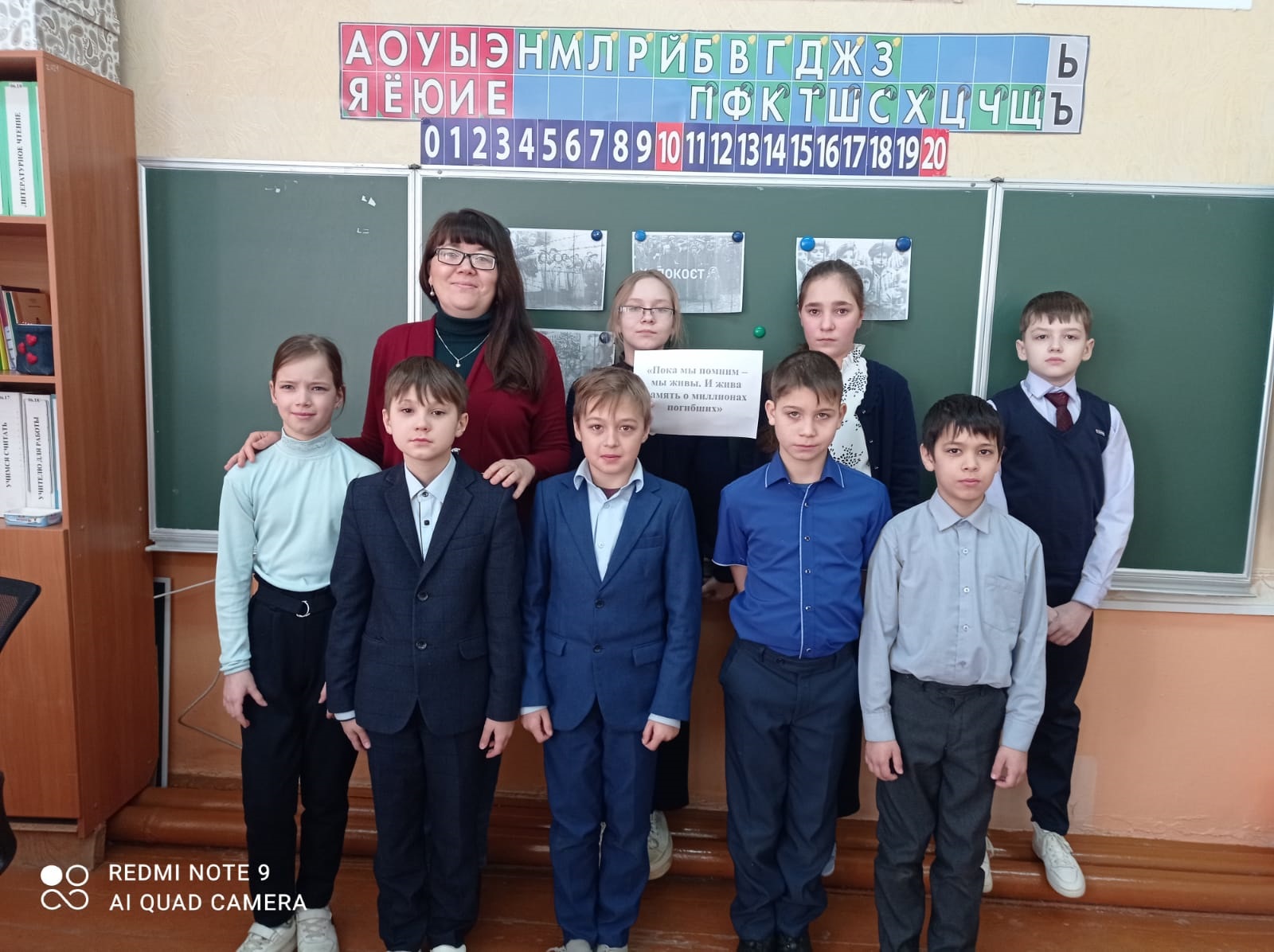 24 января в 4 классе прошел Час памяти «Трагедия Холокоста». Во время мероприятия провели познавательную лекцию с сопровождением презентации. Библиотекарь Аделина Гамировна рассказала ребятам о геноциде советского народа в годы Великой Отечественной войны, о зверствах фашистов, о планах фашистской Германии по истреблению советского народа.Холокост – унес жизни 6 миллионов евреев, почти 3 миллиона из которых были гражданами нашей страны. На оккупированных территориях, входящих ныне в Российскую Федерацию, действовало 41 гетто, в которых методично истреблялось еврейское население. Но самым страшным проявлением Холокоста стали лагеря или как их тогда называли «фабрики смерти», созданные фашистами для физического истребления людей, объявленных «недочеловеками». Понять причины современного геноцида, остановить возрождающийся фашизм невозможно без знания истории Холокоста. Трагедия Холокоста - это не только часть истории евреев; русского народа, а также это Катастрофа всего человечества, это, в сущности, кризис мировой цивилизации, получивший продолжение в Афганистане, Сирии, Чечне, в терактах по всему миру. И мы не должны об этом забывать, а знание свое обязаны передавать детям и внукам."Пока мы помним – мы живы. И жива память о миллионах погибших». -