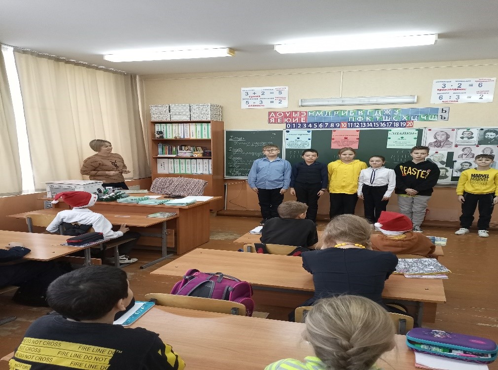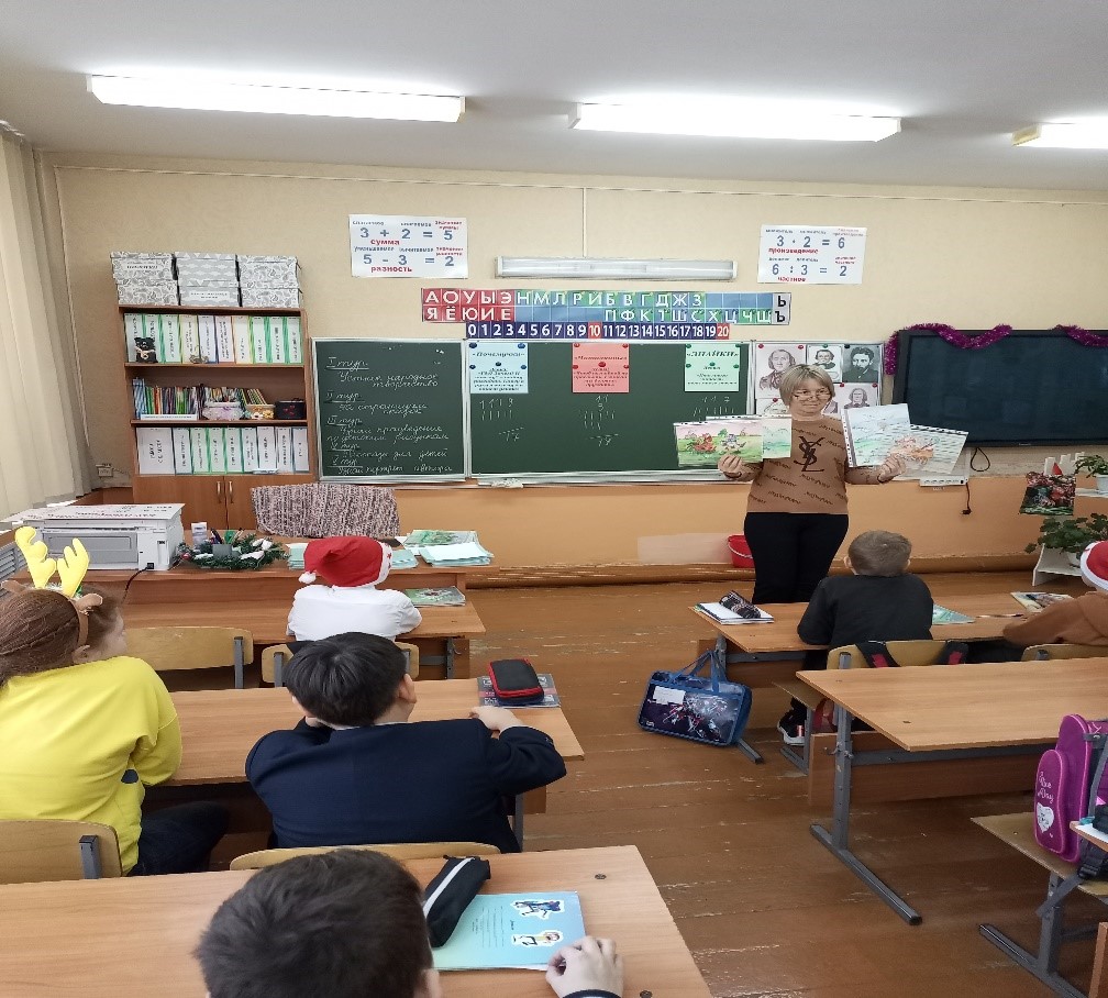 В школьной библиотеке прошел литературный час «Книги про Новый год для детей» с учащимися 2 класса. На занятии учащиеся прослушали беседу о традиции данного праздника. Поучаствовали в викторине, отгадывали загадки, собирали елочку из частей, из букв составляли слова по теме занятия. В завершении познакомились с книжной выставкой, рассказывали стихи и получили небольшие подарки в виде закладок для книг и сладких презентов. -