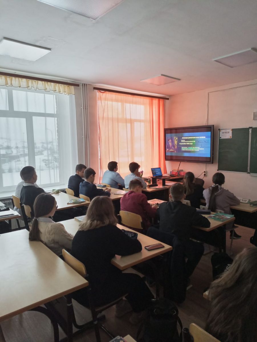 12 декабря в МГИМО состоялось открытие Всероссийского единого урока «Права человека», который посвящен Дню Конституции РФ и Дню прав человека. Учащиеся 5-9 классов нашей школы приняли в нем участие.С лекцией перед слушателями выступил первый заместитель руководителя рабочего аппарата Уполномоченного по правам человека в Российской Федерации И.В.Чечельницкий. Он поприветствовал всех участников Всероссийского единого урока «Права человека» от имени Уполномоченного по правам человека в РФ Т.Н.Москальковой. Илья Валентинович отметил: «Всероссийский единый урок стал по-настоящему народной и любимой акцией. При поддержке Министерства науки и высшего образования мы подключили студенчество к этому процессу. Также в этом году в школах появился отдельный блок тем, посвященный правам человека. Важно, что молодежь может знать о своих возможностях и уметь защитить себя и своих близких». Илья Валентинович подробно рассказал о международных документах, посвященных правам человека, конституционных правах и обязанностях, государственных органах, обеспечивающих защиту прав человека, об институте Уполномоченного по правам человека в Российской Федерации, а также об основных направлениях деятельности Уполномоченного и особенностях его работы в 2022 году. -