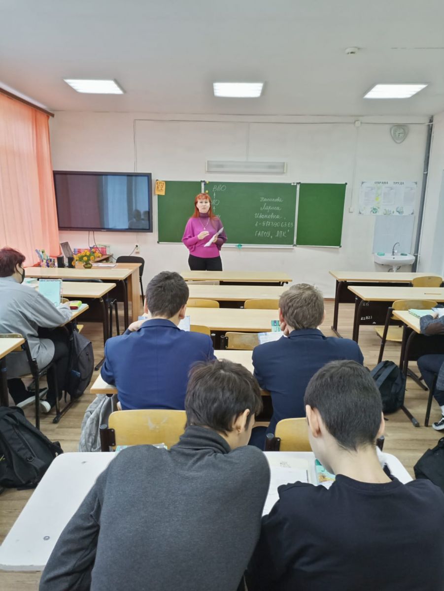 Всегда перед учащимися старших классов стоит один жизненно важный вопрос: «Кем быть?», так как жесткая конкуренция на рынке труда заставляет задуматься школьников и их родителей над этой потребностью. Не растеряться, правильно сориентироваться, найти свое место в огромном мире профессий сложно, особенно молодому человеку, окончившему школу. Он должен сделать свой выбор в пользу профессии, добиться успеха для него, необходимого обществу и запросам, интересам рынка труда.Помочь ребятам найти свое место в жизни и призвание помогла представитель Лениногорского политехнического колледжа Насипова Л.И. В ходе этой встречи она подробно рассказала обучающимся 9 класса о профессиях и особенностях, предложениях и правилах поступления, организации теоретического и практического обучения и досуга студентов, о стипендиальной системе, трудоустройстве выпускников. Старшеклассники получили ответы на все свои вопросы. В ходе беседы Лариса Ивановна отметила, что ЛПК – это большая дружная семья, где студенты общаются с преподавателями и мастерами п/о, не только познают теоретические аспекты различных наук, но и приобретают практические навыки успешного участия в конкурсах и олимпиадах, взаимодействии с работодателями. По случаю встречи старшеклассники получили информацию раздаточных материалов. В рамках таких встреч у ребят есть возможность сконструировать свою образовательную деятельность при выборе будущей профессии. -