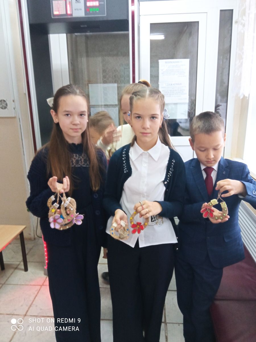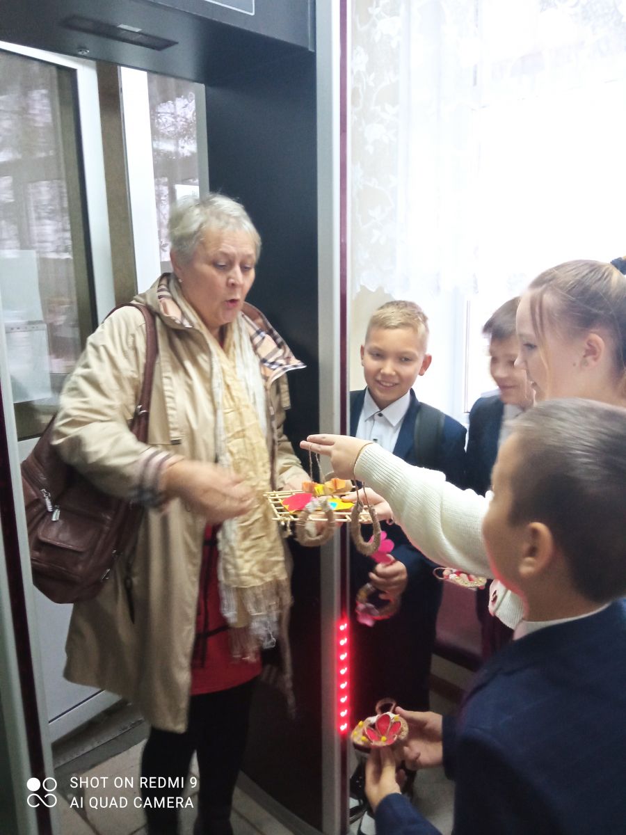 5 октября традиционно в нашей школе отметили День Учителя. Учащиеся 1-4 классов на уроках ИЗО искусства рисовали портреты своих первых учителей.5-классники на уроке технологии сделали своим любимым учителям подковки, на счастье. 6 класс занимался изготовлением открыток. 7 класс также на уроках технологии изготовили оригинальные панно в подарок учителям. Утром 5 октября дежурный 5 класс уже ждал учителей у дверей школы, чтобы поздравить их с профессиональным праздником. В школе на всех переменах звучала праздничная музыка, которую подобрали для этого дня учащиеся 8-9 классов. -