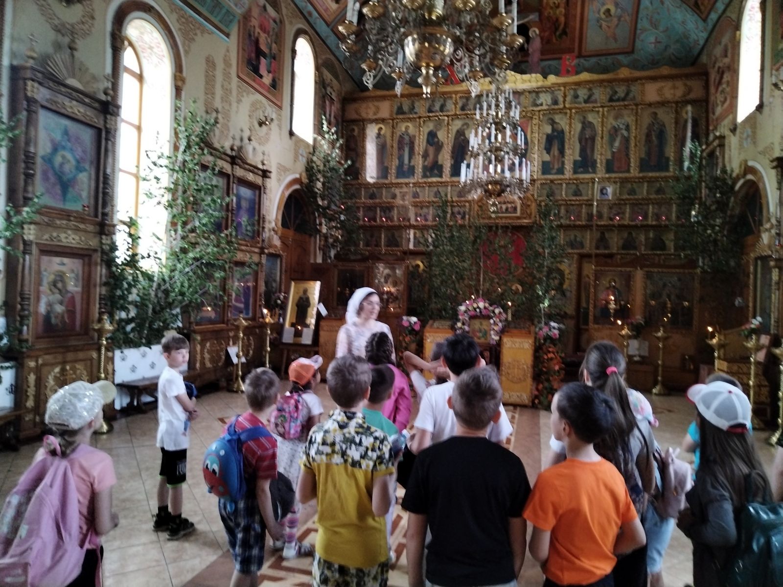 Получить солнечный ожог могут и отдыхающие на пляже, и туристы, осматривающие достопримечательности, и дачники, словом, все те, кто провел слишком много времени на солнцепёке. Поэтому в этот день дети узнали на минутке здоровья, как оказать первую помощь при солнечном ожоге.Экскурсия в Храм Святой Троицы ребятам очень понравилась. Они узнали, что на современной территории города Лениногорска, основанного в 1955 году, до революции существовали две церкви, не сохранившиеся до наших дней. Вновь православный приход в городе появился в 1989 году. За кароткое время был устроен молитвенный дом в честь Покрова Пресвятой Богородицы, а рядом с ним началось строительство нового храма Пресвятой Троицы. 7 марта 1994 года был освящен главный престол, и с этого времени в храме регулярно стали совершаться богослужения. Второй престол был освящен в честь великомученника Димитрия Солунского. В 1996 году к храму была пристроена колокольня. В 2001 году завершилось строительство трехэтажного здания воскресной школы.В храме хранятся особо почитаемые верующими икона Божией Матери «Скоропослушница» и мощевик, в котором находятся частицы мощей святых и камни с почитаемых мест Святой земли. -