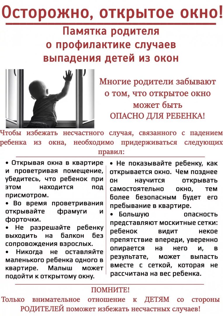 Профилактика выпадения детей из окон