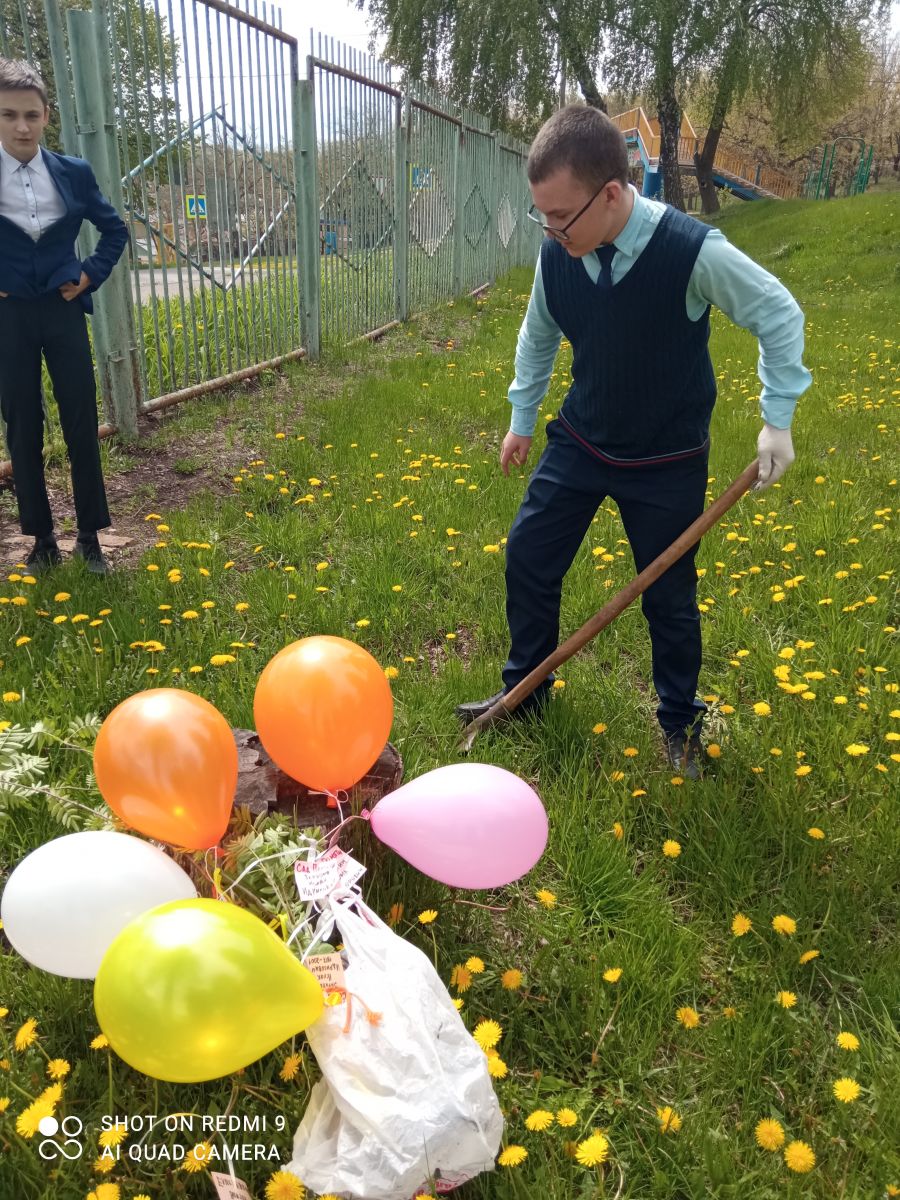25 мая 2022 года активисты команды ФОРПОСТ Сайфуллин Евгений и Батрашкин Владислав стали участниками всероссийской акции «Сад Победы».Заместитель директора по АХЧ Андреева Ландыш Миргасимовна приготовила для ребят саженцы рябины. Заместитель директора по ВР Потапова Лилия Юрьевна оранизовала посадку саженцев.Учителя и ученики школы посвятили каждый саженец своему родственнику –участнику Великой Отечественной войны.Вот эти имена:-Зарипов Исхак Идрисович;-Ахмадиев Мухаммаднаиль Ахмадиевич;-Вагизов Зиннур Вагизович;-Мингазов Шиган Мингазович;-Журавлев Виктор Елисеевич;-Никитин Фома Федорович.На каждом саженце закреплена табличка с одним из этих имен.Будем надеяться, что наши деревца приживутся, и через много лет ученики, учителя и гости школы будут любоваться рябинками, а имена наших соотечественников –героев войны останутся не только в наших сердцах, но и в истории школы. -