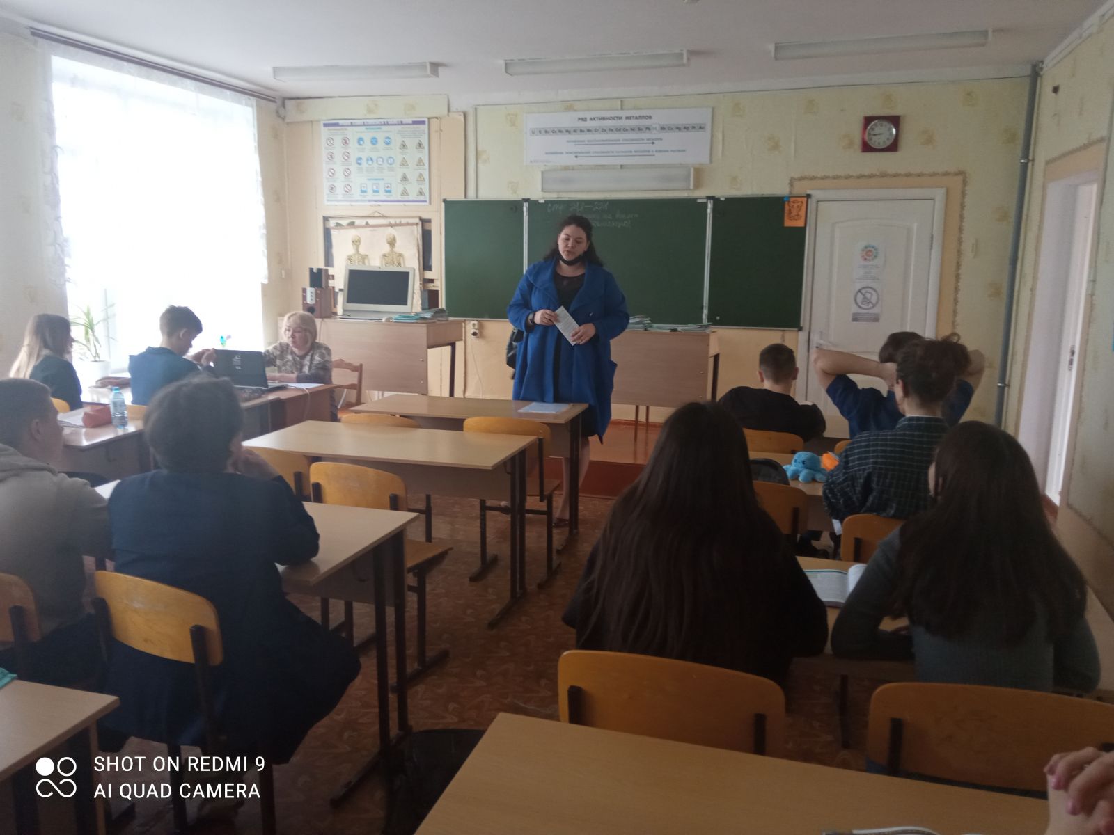 28 апреля 2022 года перед 9 –тиклассниками школы выступила Стриженюк Яна Михайловна, заведующая отделением ТЭЭПНК (Троицкого Авиационного Технического колледжа). Яна Михайловна рассказала ребятам об истории данного образовательного учреждения, о специалистах, которых там готовят. Представитель ТЭЭПНК познакомила выпускников с условиями приема в колледж, проживания и обучения. В конце беседы ребята получили рекламные буклеты данного учреждения, чтобы при желании более близко познакомиться с эти заведением и показать родителям/ -