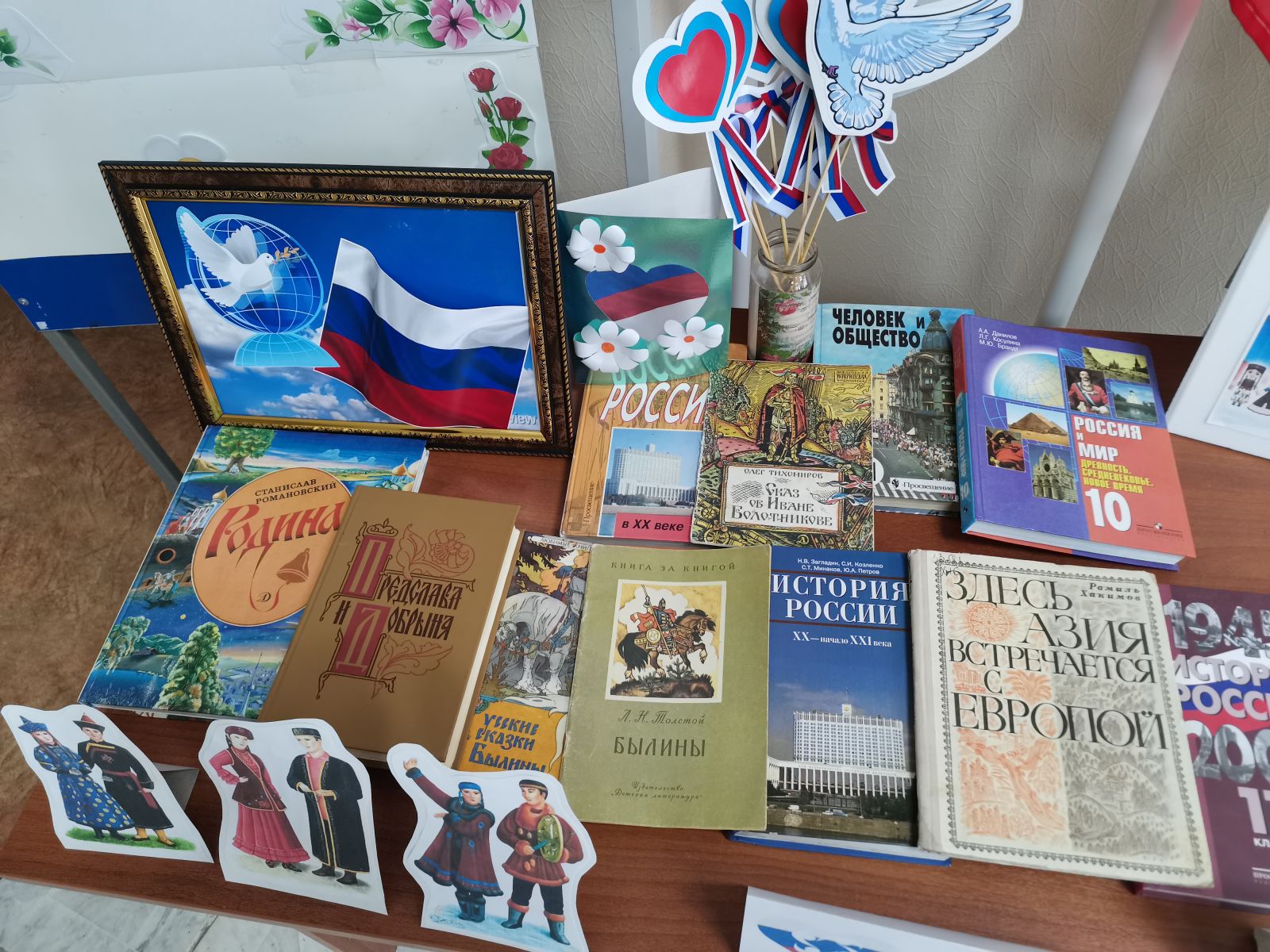 Для современной России День народного единства — это праздник, в котором мы отдаем дань вековым традициям патриотизма и согласия народа. История нашей страны богата примерами, когда именно единение всего многонационального народа во имя блага и процветания России открывало путь к укреплению независимости государства, способствовало развитию общества и сохранению культурно-исторического наследия. История России учит нас: порознь, поодиночке не сделать того, что можно сделать вместе. Сильна Россия только тогда, когда она едина.На книжной выставке представлены книги о нашей родине России, книги из серии «История России»: «Герои русской истории», «Легенды о русских героях» и многие другие, Это образец героизма и сплоченности всего народа вне зависимости от происхождения, вероисповедания и положения в обществе.Также в экспозиции присутствуют элементы прикладного творчества — поделки и рисунки выполненные маленькими читателями библиотеки. -