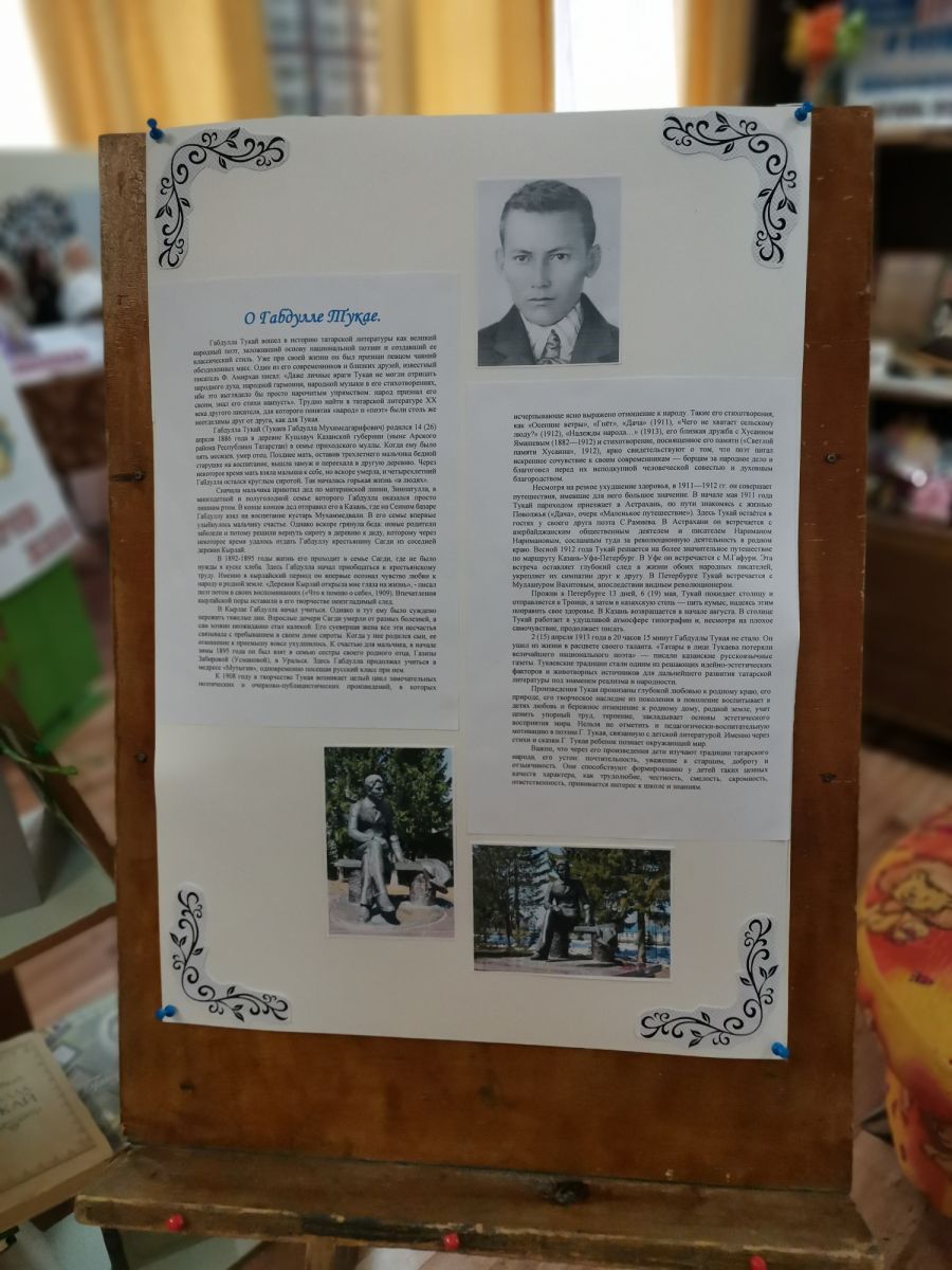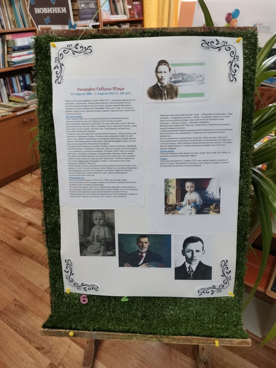 Татарский поэт Габдулла Тукай прожил недолго: всего 26 лет. Но за это время он издал около 30 томов стихов, одним из первых в Казани стал писать для детей и выпустил несколько трудов о татарском фольклоре. Благодаря Тукаю жители Татарстана познакомились с творчеством Пушкина, Лермонтова и других русских поэтов, многие его произведения стали основой для песен, а балет по поэме «Шурале» ставили на сцене Мариинского и Большого театров.К 137-летию со дня рождения поэта Габдуллы Тукая, школьный библиотекарь представила книжную выставку. Читатели библиотеки смогут познакомиться с нелегкой судьбой таланта, его творчеством. -