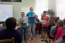 24 июля дети пришкольного лагеря участвовали в конкурсе рисунков на асфальте. Дети рисовали на свободную тему. После конкурса ходили на экскурсию в центральную библиотеку. В библиотеке их знакомили с русским фольклором. После обеда дети играли на свежем воздухе. Провели загадочный квест.