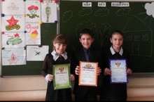 Ребята младших классов принимают участие в конкурсе рисунков на асфальте "Правнуки рисуют Победу", изготавливают праздничные открытки.