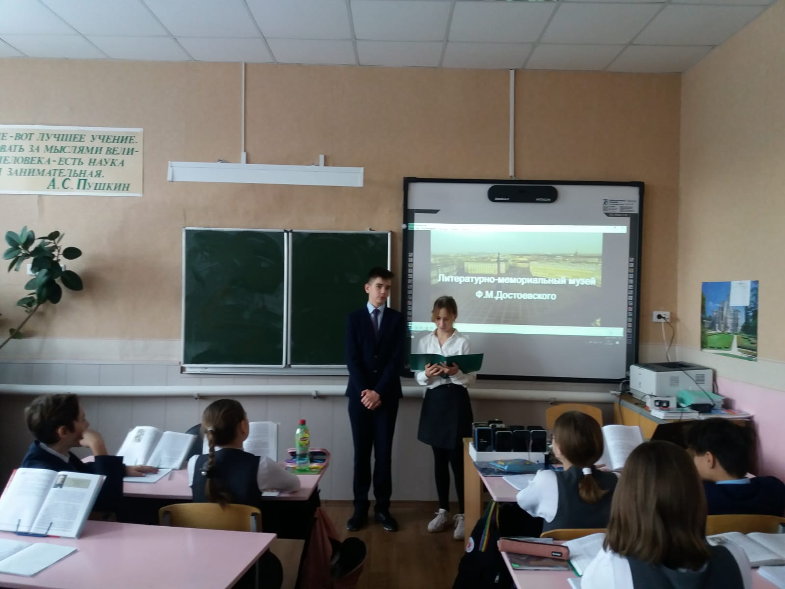 В 5Б прошёл урок литературы, посвящённый 200-летию Ф. М.Достоевского. Ребята познакомились с биографией и творчеством великого писателя, поделились интересными фактами из его жизни.