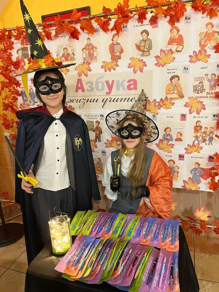Подарили волшебные палочки каждому учителю и посвятили их в настоящие волшебники. Теперь в нашей школе работают не просто учителя, а волшебные учителя!!