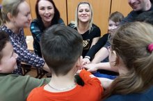 с детьми. Тема встречи "Станем ближе друг к другу". В ходе тренинга участникам были предложены интерактивные упражнения на понимание чувств, предупреждение и преодоление конфликтных ситуаций, совместные выполнения заданий. Каждая семья получила Памятки, созданные руководителем профессионального сообщества педагогов-психологов РТ ЭХ.Башлай. Родители и дети дали высокую оценку проведенному мероприятию