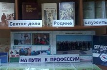 В рамках месячника патриотического воспитания в школьной библиотеке оформлена книжная выставка "Святое дело Родине служить!", на которой представлены книги, рассказывающие о событиях военной истории, о героическом прошлом нашего народа, повествующие о тех испытаниях, которые пришлось перенести нашему народу и его вооруженным силам, защищая отечество.