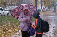 Несмотря на ненастную погоду, 6 Б класс (кл.рук. Пономарева Л.Н.) поздравили пожилых людей с этим знаменательным днем. -