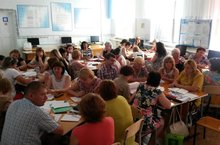 Первая часть педсовета прошла в форме групповой работы по методу фасилитации, в ходе которой были проанализированы плюсы и минусы работы коллектива в прошедшем учебном году.