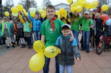 В ходе акции активисты играли с детьми, дарили им воздушные шары «смайлики» и рисовали цветными мелками.
