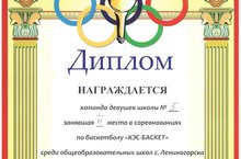 команду девушек СОШ №5, занявшую II место в соревнованиях по баскетболу «Кэс-Баскет»: