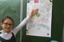 Дерево толерантности «выращивали» ученики 3 Б класса на классном часе, посвященном Международному Дню толерантности. Это дерево расположено в классном уголке и будет напоминать детям о правилах в отношениях между людьми.