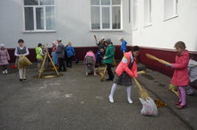Сегодня учащиеся 2В класса, участвуя в акции "Осенняя неделя добра-эстафета добрых дел", организовали уборку школьного двора. Вооружившись метелками, убрали мусор и опавшие листья. Работали весело и с удовольствием. Молодцы!
