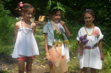 Первая половина дня задалась очень солнечная, и ребята пошли в поход. На месте был проведен праздник «На балу у Золушки». Девочкам предстояло продемонстрировать свои цветочные наряды. После показа мод принцессы даже нашли своих принцев. Участники были обрадованы сладкими призами.