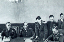 Советский Союз представлял заместитель Верховного главнокомандующего маршал Советского Союза Г. Жуков, союзников — главный маршал авиации Великобритании А. Теддер.