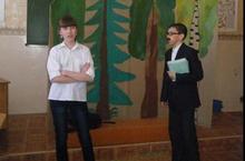 25 апрельдә 7Б сыйныфы һәм сыйныф җитәкчесе Д.Ф.Мурадымова Т.Миңнуллинның “Кайда дөреслек, кайда хаклык” дигән әсәрен сәхнәләштереп күрсәттеләр. Укучылар рольгә кереп, үзләрен чын артистларча тотып, сәхнә серләренә төшенделәр.