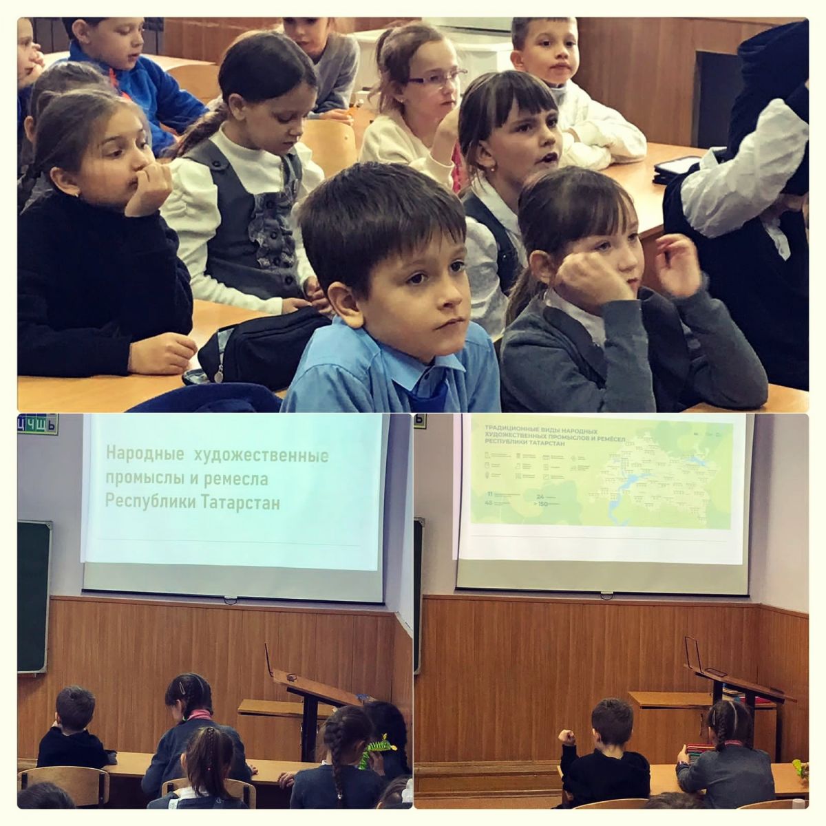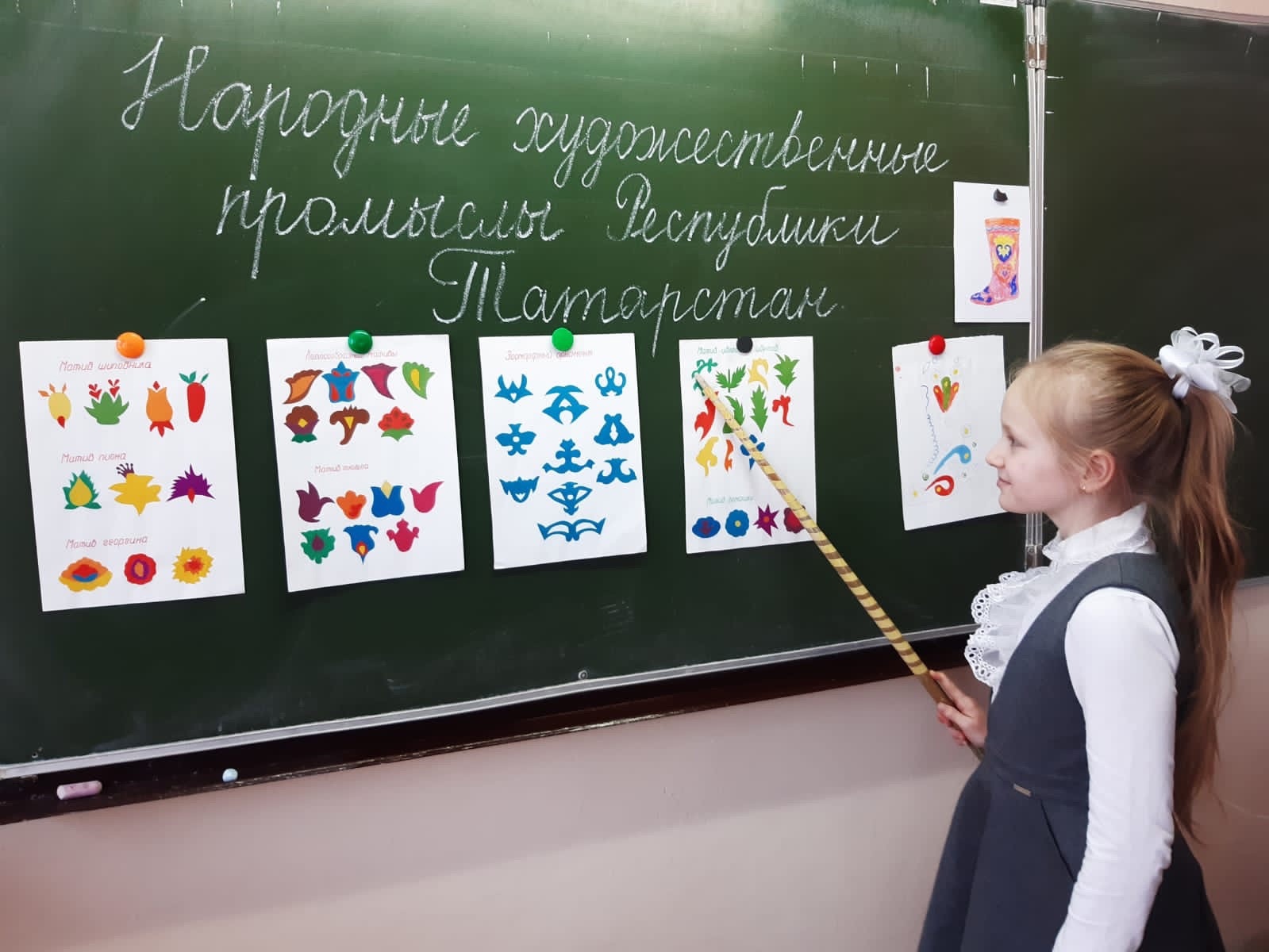 Во 2 А и 2 Б классах прошёл классный час «Народные художественные промыслы Республики Татарстан». Ребята узнали о декоративно-прикладном искусстве и народных промыслах Республики Татарстан. Ребята познакомились с понятиями " художественное ремесло", " народный художественный промысел", "Декоративное-прикладное искусство". Попробовали себя в роли народных умельцев. С интересом слушали о культуре жителей республики, творчестве художников и народных мастеров.