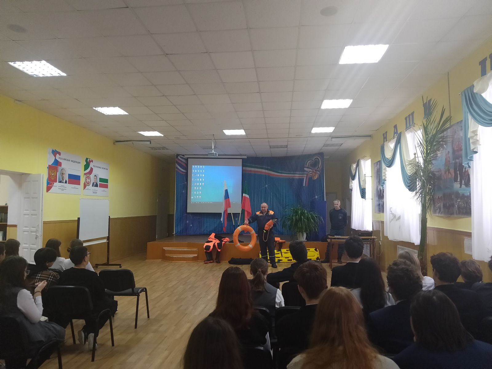 28 ноября 2023г. в стенах школы была проведена встреча спасателей зонально-поискового спасательного отряда №7 с учащимися 8-9 классов. Спасатели Коновалов С.И. и Куликов В.В. провели занятие по предупреждению несчастных случаев на водных объектах в осенне-зимний период. Учащиеся школы узнали, чем опасен осенний и зимний лед, каковы условия безопасного пребывания человека на льду, чем опасно попадание человека под лед и что делать, если ты сам попал в беду, повторили алгоритм действий при спасении человека, провалившегося под лед. Ребята увидели, каким снаряжением пользуются спасатели: спасательный круг, спасательный линь, жилет, гидрокостюм, спасательная доска. Учащиеся 8-9 классов пришли к выводу, что беду легче предупредить, чем ликвидировать ее последствия. Несчастного случая не произойдет, если строго соблюдать правила поведения на водоёме!