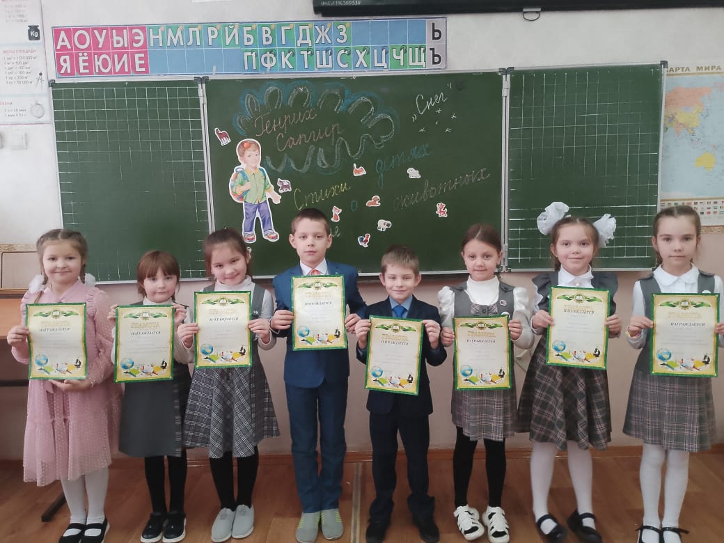 Сегодня учащиеся 1,2 классов приняли участие в конкурсе чтецов, посвященный юбилею Генриха Вениаминовича Сапгир. Ребята познакомились с биографией писателя, читали стихи. Участники первых классов были награждены грамотами по номинациям. Среди чтецов вторых классов 1место -Гарипов Вильдан,2 место-Галиева Алина, 3место-Хаертдинова Аделина. Матвееву Матвею вручена грамота в номинации "Прекрасный чтец".