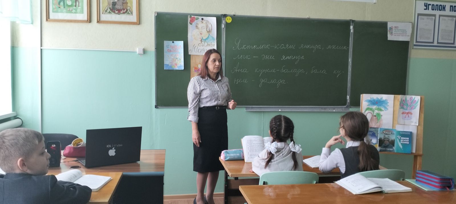 "Мама, Мамочка!"Это самые нежные, самые ласковые, самые теплые слова на каждом языке. Ведь ими называют того человека, который родил тебя на этот свет. А этот человек-твой Ангел на Земле, понимающий тебя с полуслова, согревающий тебя в холодную погоду, утешающий тебя в момент тревоги, находящийся всегда рядом с тобой. Очень скоро День матери. В связи с этим в 4 Б классе урок литературного чтения был посвящён мамам. Учащиеся слушали песни о мамах, читали стихи, пословицы. Поздравив маму, они написали открытки на родном языке.