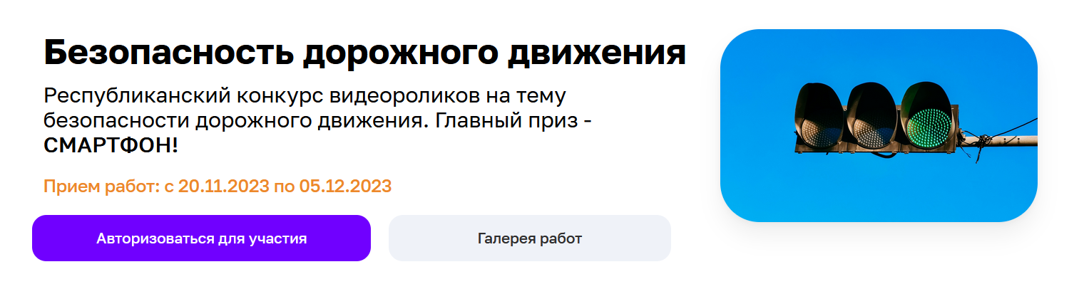 С 20 ноября по 25 декабря 2023 года Министерством образования и науки Республики Татарстан совместно с Министерством цифрового развития государственного управления, информационных технологий и связи Республики Татарстан, Управлением Государственной инспекции безопасности дорожного движения по Республике Татарстан, Государственным учреждением «Научный центр безопасности жизнедеятельности детей», Государственным бюджетным учреждением «Безопасность дорожного движения», Республиканским агентством по печати и массовым коммуникациям «Татмедиа» проводится республиканский конкурс видеороликов на тему безопасности дорожного движения в мобильном приложении «Я – школьник» среди обучающихся 5-11 классов общеобразовательных организаций Республики Татарстан.