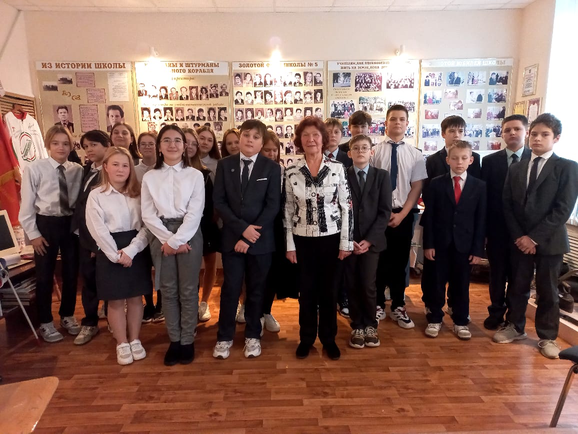 В рамках Года педагога и наставника объявленного в 2023 году, с целью признания особого статуса педагогических работников и повышения престижа профессии учителя в СОШ №5 открыт цикл встреч с интересными людьми-выпускниками школы и бывшими учителями школы. Сегодня, в школьном музей прошла встреча учащихся 7А класса с ветераном педагогического труда-Корабельниковой Валентиной Николаевной, которая с 1976 года,45 лет занималась педагогической деятельностью. В своей беседе с ребятами она, ярко, эмоционально и доступно подчеркнула важность учебной и трудовой деятельности каждого человека во благо Родины. Вспомнила интересные ситуации из педагогической жизни и дала ценные жизненные советы подрастающему поколению.