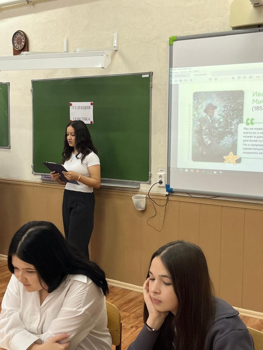 Опубликовано: 10.11.202510 ноября в 8Б прошел классный час «Разговоры о важном». Тема: " Селекция и генетика. К 170-летию И.В. Мичурина". Урок был посвящен выдающемуся ученому и селекционеру Ивану Владимировичу Мичурину, чьи работы оказали огромное влияние на развитие сельского хозяйства в стране. Учащиеся узнали о его новаторских методах селекции, таких как отдаленная гибридизация, и о его вкладе в создание новых сортов плодово-ягодных культур, адаптированных к российскому климату. В ходе занятия ребята обсудили основные принципы генетики и селекции, а также их практическое применение в современном мире. Были рассмотрены примеры успешных селекционных проектов и их значение для обеспечения продовольственной безопасности.