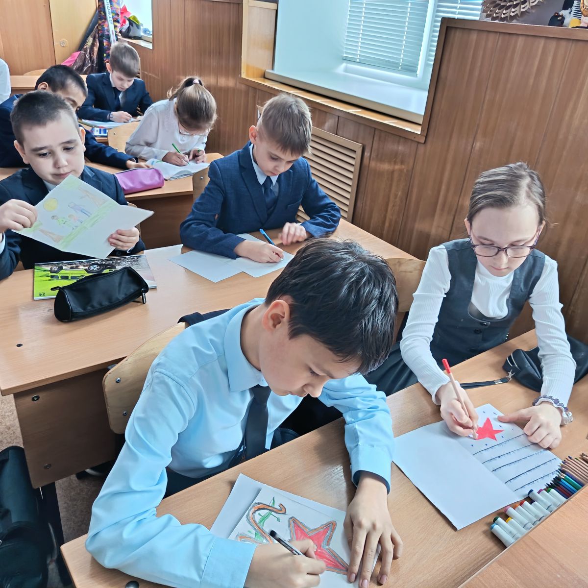 Ученики 4 Б класса создали открытки для военнослужащих, участвующих в специальной военной операции.