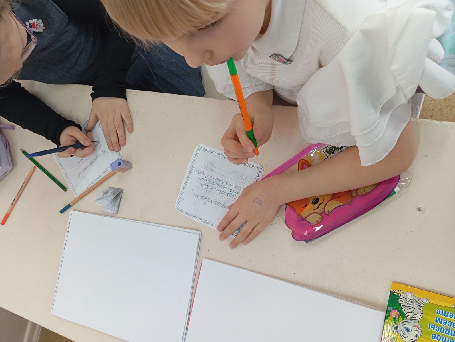 Ученики 1 "А" класса сделали открытки для военнослужащих, участвующих в специальной военной операции.