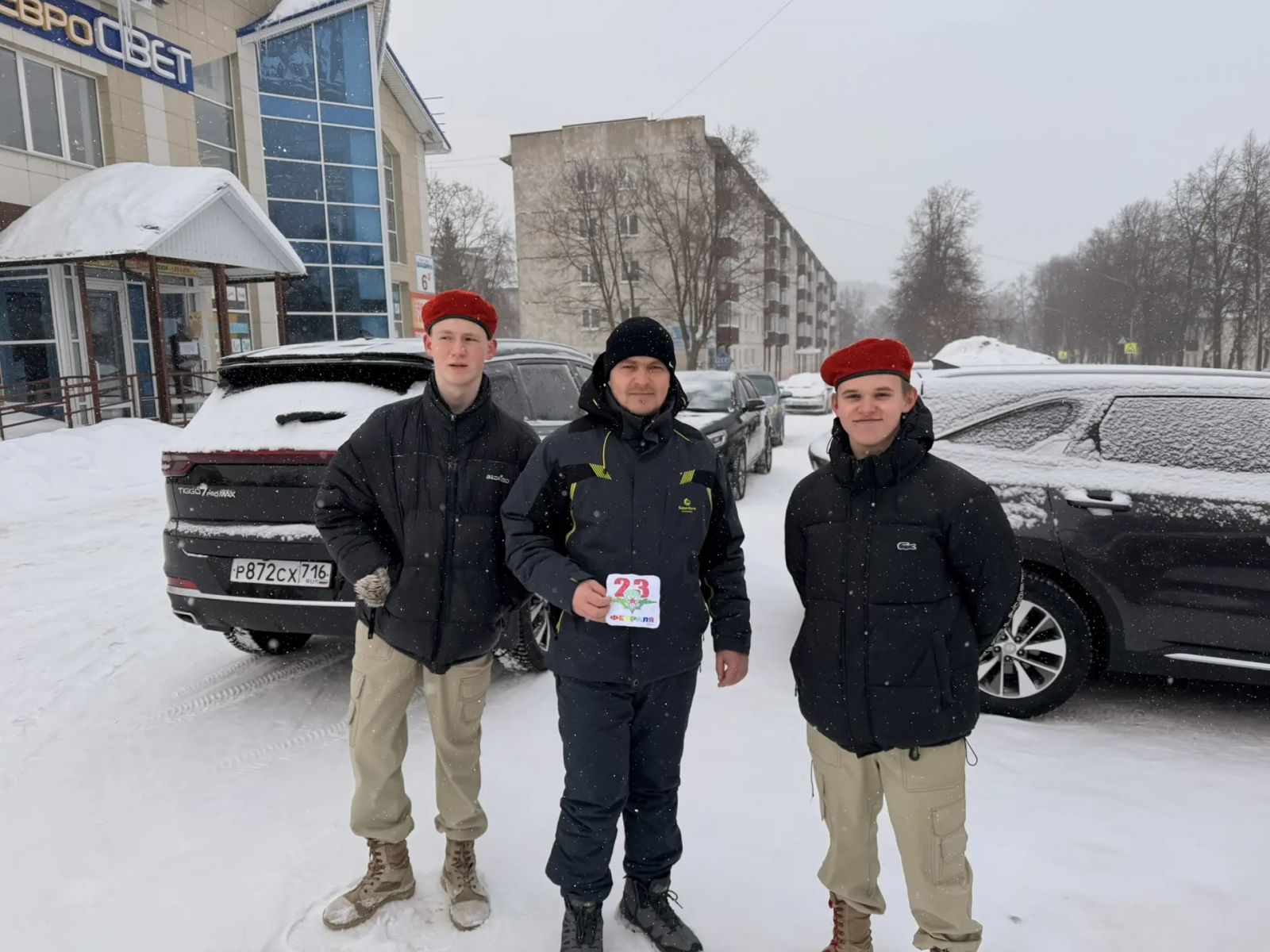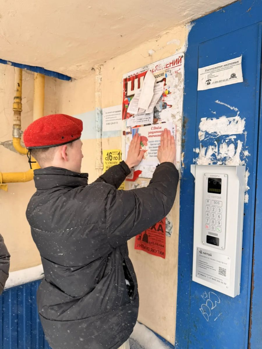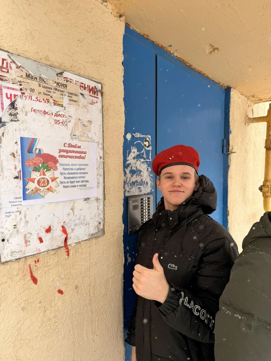 Опубликовано: 25.02.2026Отряд "Юнармия" поздравил граждан нашего микрорайона с днем Защитника Отечества.