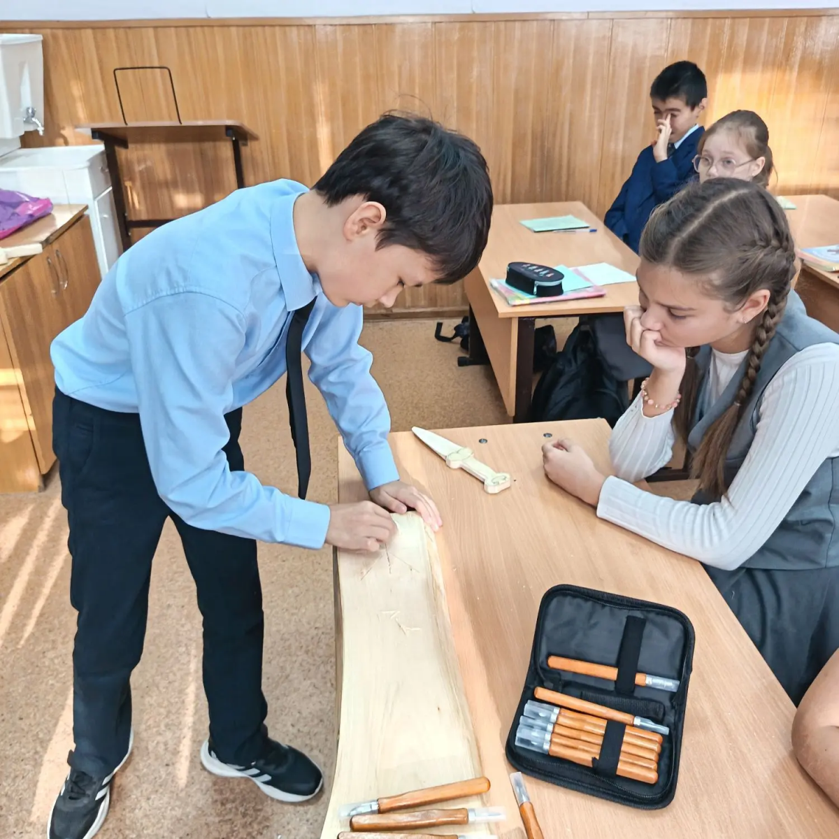 «Ученик 4Б класса провел мастер-класс по резьбе по дереву для одноклассников»