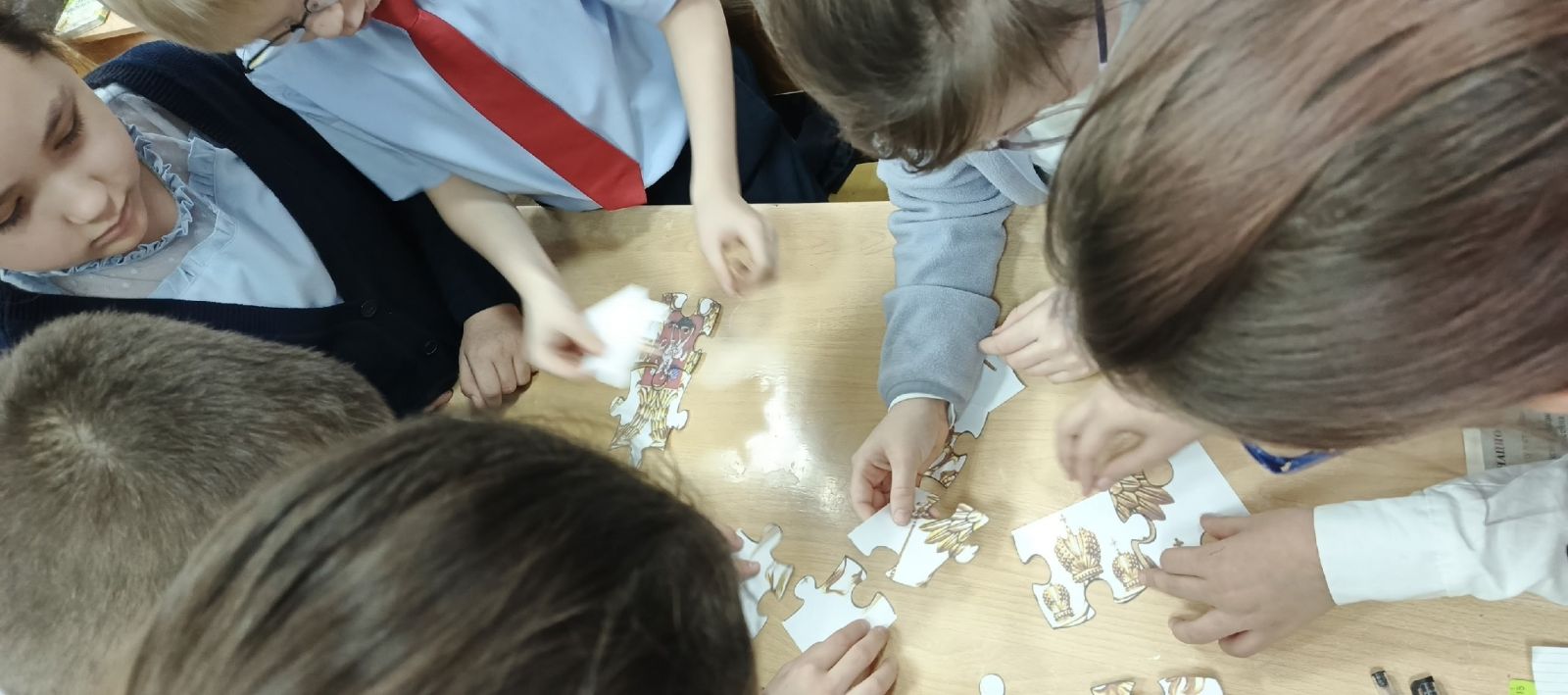 Для ознакомления с этим днем начальных классов и повторением информационных данных со старшим звеном, советник директора по воспитанию провела ряд мероприятий. Учащиеся младшего возраста активно собирали пазл данного символа, распознавали правильные элементы, содержащие в символе. Старшие классы проводили тематический урок закрепляя свои знания и изготавливали информационные плакаты.