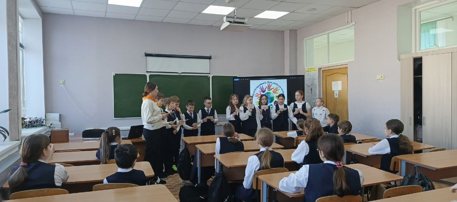 Советник директора нашей школы, с целью укрепления понятий и значимости родного языка, провела с учащимися ряд мероприятий, такие как: просмотр презентации «Как важен нам родной язык», поиграли в настольную игру «Лингвистический шторм» и игру «Кто я?». В завершение мероприятия закрепили понятия как, единство народов России, историческая память и преемственность поколений, приоритет духовного над материальным.