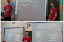 Урок мужества, посвященный 79 годовщине Сталинградской битвы «Мужество Сталинграда» в 9А классе провели юнармейцы Андреев Александр и Романов Александр, в 8А классе Халиков Артур и Кашапов Эмиль. Ребята рассказали о героизме и мужестве наших солдат, о командном составе, о подвигах медсестёр, показали с помощью презентации исторические памятники той великой битвы: Мамаев курган, дом Павлова, музей-панораму «Сталинградская битва», показали хронику Сталинградской битвы.