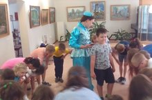 Субботний день в лагере начался с утренней зарядки. Воспитатели провели инструктажи по ПДД, по правилам поведения в музее. Отдыхающие лагеря побывали в краеведческом музее, для них было проведено мероприятие "Народные игры". Ребята познакомились с играми народов мира. Дети с удовольствием приняли участие!