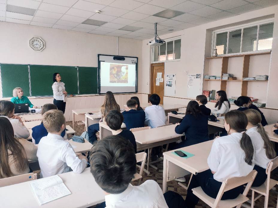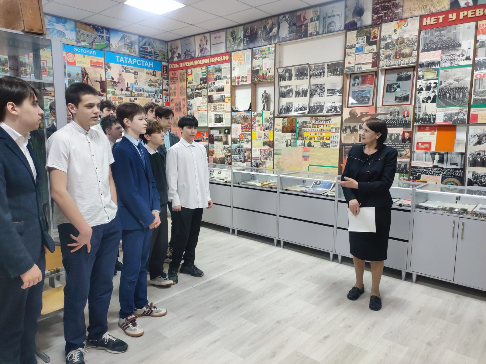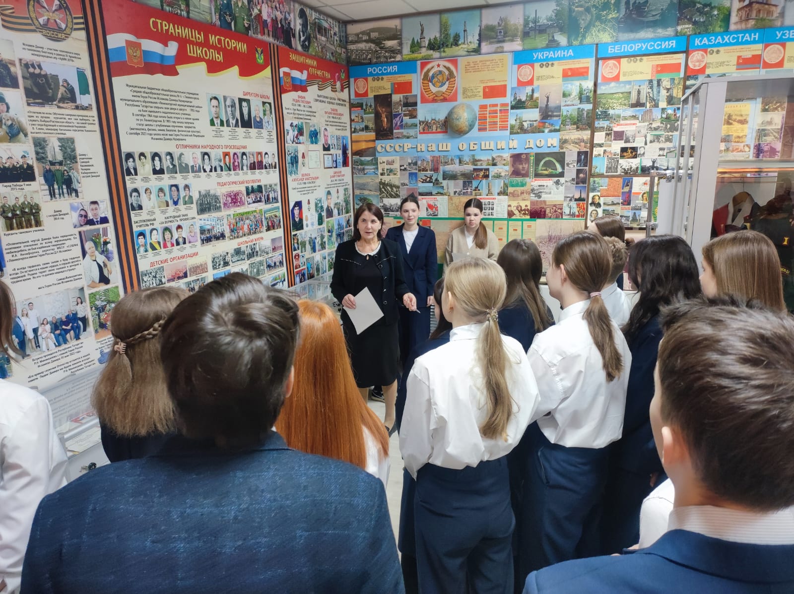 Экскурсоводы школьного музея 'Родная земля" провели экскурсию для учащихся 9В класса по теме "Защитники Отечества'. Ребята узнали о выпускниках школы - участниках Специальной военной операции, а также об их подвигах, которые навсегда останутся на страницах нашей истории.