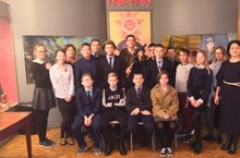 15 февраля учащиеся 7 В класса (кл. руководитель Касимова В.Т.) посетили Лениногорский краеведческий музей. Заведующая сектором Минязева Фагима Фаатовна провела интерактивную экскурсию «Реликвии войны». Ребятам предоставили предметы быта и вооружения солдат периода Великой Отечественной войны 1941-45 гг. Они примерили обмундирование тех лет – это каска, пилотка, сапоги, портянки, галифе, плащ-палатку, ремень и фотографировались в них. Также ребята ознакомились с лото «Символы Победы».
