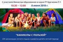 8 июня 2018 года с 10.30 до 12.00 состоится Республиканское родительское интернет - собрание "Каникулы с пользой" (об организации летнего отдыха и развитии детей в летний период)с участием Министра образования и науки РТ Бурганова Р.Т.