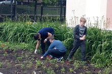 В рамках проведения "Зеленой недели" эко-помощники 5Б (кл. руководитель Мурзина Т.А.) и 5В (кл. руководитель Вильданова Л.З.) занимаются облагораживанием территории школы. Ребята усердно борются с сорняками, очищают территорию от мусора, грязи, рыхлят землю вокруг деревьев.