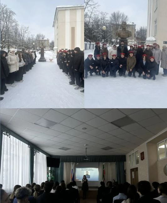 Учащиеся нашей школы приняли участие в тематическом мероприятии «Герои Родины – как много в этом смысла!» Учащиеся посмотрели видеоматериалы , читали стихи посвященные герою. Ребята возложили цветы к бюсту Героя России.