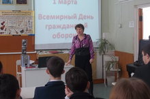 1 марта – Всемирный день гражданской обороны. В этот день в школу пригласили ведущего специалиста учебного центра МЧС г. Лениногорска Сенжапову Галию Равильевну. Она рассказала учащимся историю создания гражданской обороны, цели и задачи ГО. Также затронула вопросы личной безопасности учащихся. 02.03.2016